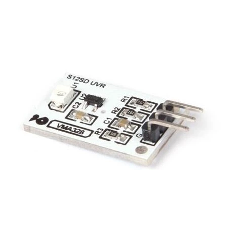 Le capteur de lumière UV analogique utilise une photodiode UV qui permet de détecter la plage de lumière de 240 à 370 nm. La plage de lumière est couverte par le spectre UVB et la plupart du spectre UVA. De plus, comme le niveau de signal de la photodiode est petit, un ampli-op a été ajouté pour amplifier le signal.