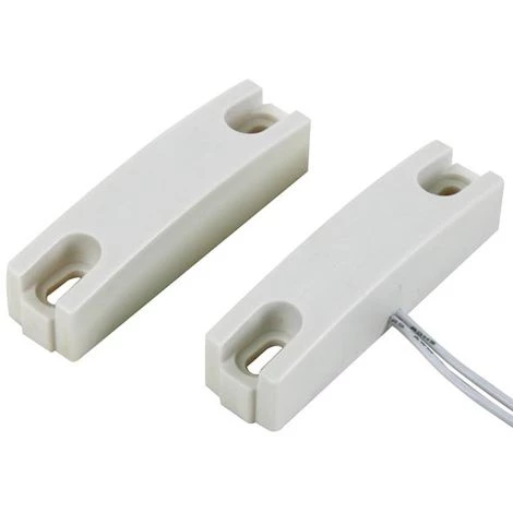couleur: blanc • contact: boucle fermée, normalement fermé • écartement: 25mm • longueur du câble: ±25cm • montage: en surface/bornes à vis • valeurs: 0.5A@100VVC • durée de vie (charges résistives): 1.000.000 (6VDC,10mA) • température de service: -10~60°C • poids: 29g