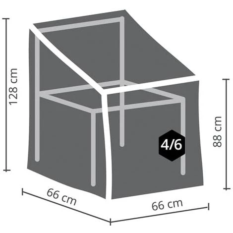 pour 4-6 chaises empilables • revêtement et coutures imperméables • écologique • grand teint • protection: •• eau •• lumière du soleil •• saleté et feuilles •• neige et gel •• fientes d’oiseaux