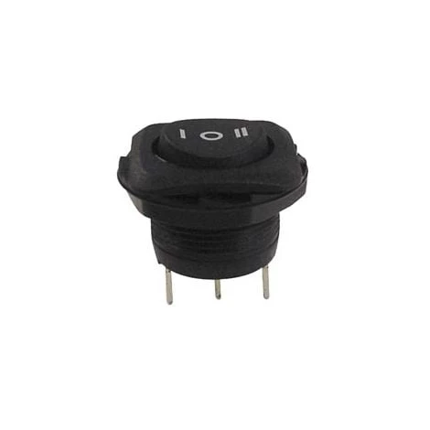 type: ON-OFF-ON SPDT • capuchon: noir • remarque: I/O/II • contacts: 5A/250Vca, 10A/125Vca • Ø de perçage: Ø 20mm • durée de vie électrique: 10000 manoeuvres à pleine charge • durée de vie mécanique: 50000 manoeuvres • résistance de contact: < 20ohm • résistance d’isolement: 1000Mohm • résistance diélectrique: •• > 1500V: 1 minute •• > 3000V: entre les pôles • température de travail: -30°C à +85°C • matériaux: •• boîtier: 66 nylon (UL94V-2) •• bascule: 66 nylon (UL94V-2) •• contact mobiles: laiton argenté •• contact fixes: laiton argenté •• connexions: laiton argenté •• contact: muni d’un ressort