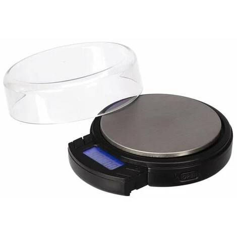 matériau: ABS & acier inoxydable • charge max.: 500 g / 17.64 oz • graduation: 0.1 g / 0.003 oz • unités: g / oz / ozt / dwt / ct / gn • dimensions: 85 x 85 x 22 mm • afficheur: LCD – 27 x 12 mm • poids: 125 g • alimentation: 2 x pile AAA de 1.5 V (incl.)