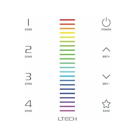 2 modes d’opération: •• contrôleur DMX •• émetteur sans fil pour système multizone (voir contrôleurs compatibles ci-dessous) • configuration sans fil: •• permet le pilotage de 4 zones dans la configuration multizone sans fil •• il est possible de connecter un nombre illimité de récepteurs à un panneau tactile • fonctions des boutons: •• ON/OFF •• réglage tactile •• luminosité +/- •• sélection de zone