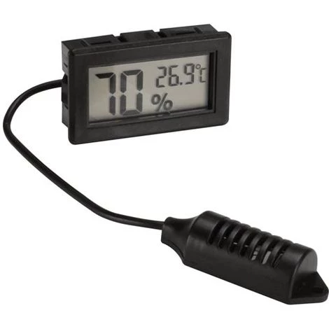 hygromètre et thermomètre • facile à encastrer • grand afficheur, bien lisible • boîtier en ABS de haute qualité • indication de pile faible