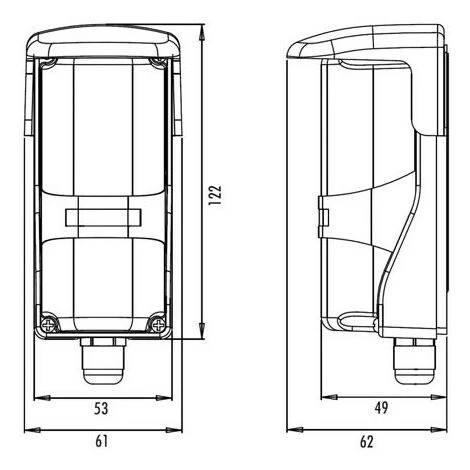 - émetteur: 122 (H) x 60 (W) x 62 (T)