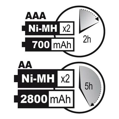 - recharge simultanée de 2 ou 4 piles type R6 ou R03