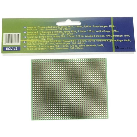 Données techniques complémentaires : Motif : bandes de soudure pleinesMatériau : circuit imprimé à une face, époxy FR-4, 1,6 mm, 1,0 oz. Support en cuivre fluxDiamètre de perçage : 1.05 mm