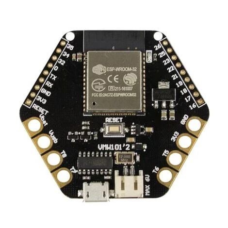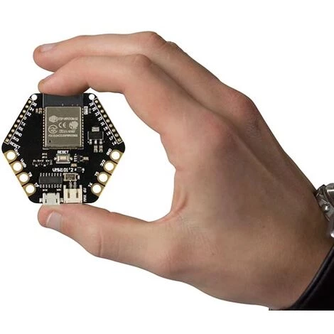 avec wifi et Bluetooth® 8 x pastilles à coudre 4 x pastilles d’alimentation 4 x pastilles tactiles capacitives 1 x LED orange capteur à effet Hall capteur de température préamplificateur analogique à très basse puissance chargeur LiPo intégré bouton de réinitialisation 2 x 8 bit DACs PCB ultramince compatible avec Arduino® compatible avec toutes les cartes LED BrightDot wearables basé sur ESP32 interfaces SPI, I²S, I²C et UART les fonctions LED PWM, UART, I2C, I2S et SPI sont configurables en GPIO convertisseur analogique-numérique SAR 12 bits, driver LED PWM (max. 16 canaux) mode sommeil profond pour économie d’énergie