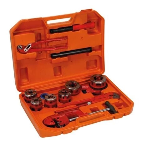 1 cliquet peignes: 1/2″ – 3/8″ – 3/8″ – 3/4″ – 1″ – 1 1/4″ 1 pince à tube 1 coupe-tubes 1 pince multiprise 1 rouleau ruban d’étanchéité