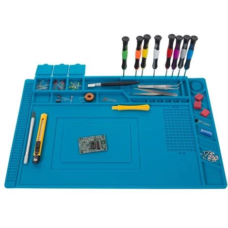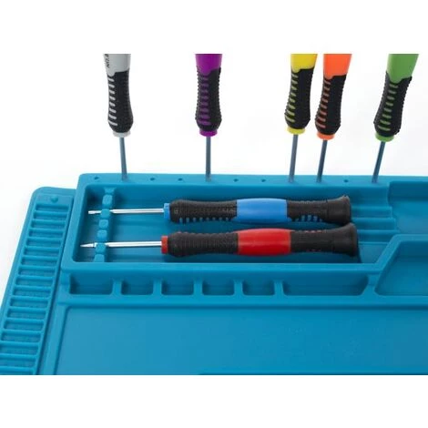 thermorésistant jusqu’à 500 °C pliable, reprend sa forme d’origine avec 3 petits compartiments de rangement et 3 zones magnétiques avec compartiments pour vis antidérapant, anti-adhérent différents porte-outils